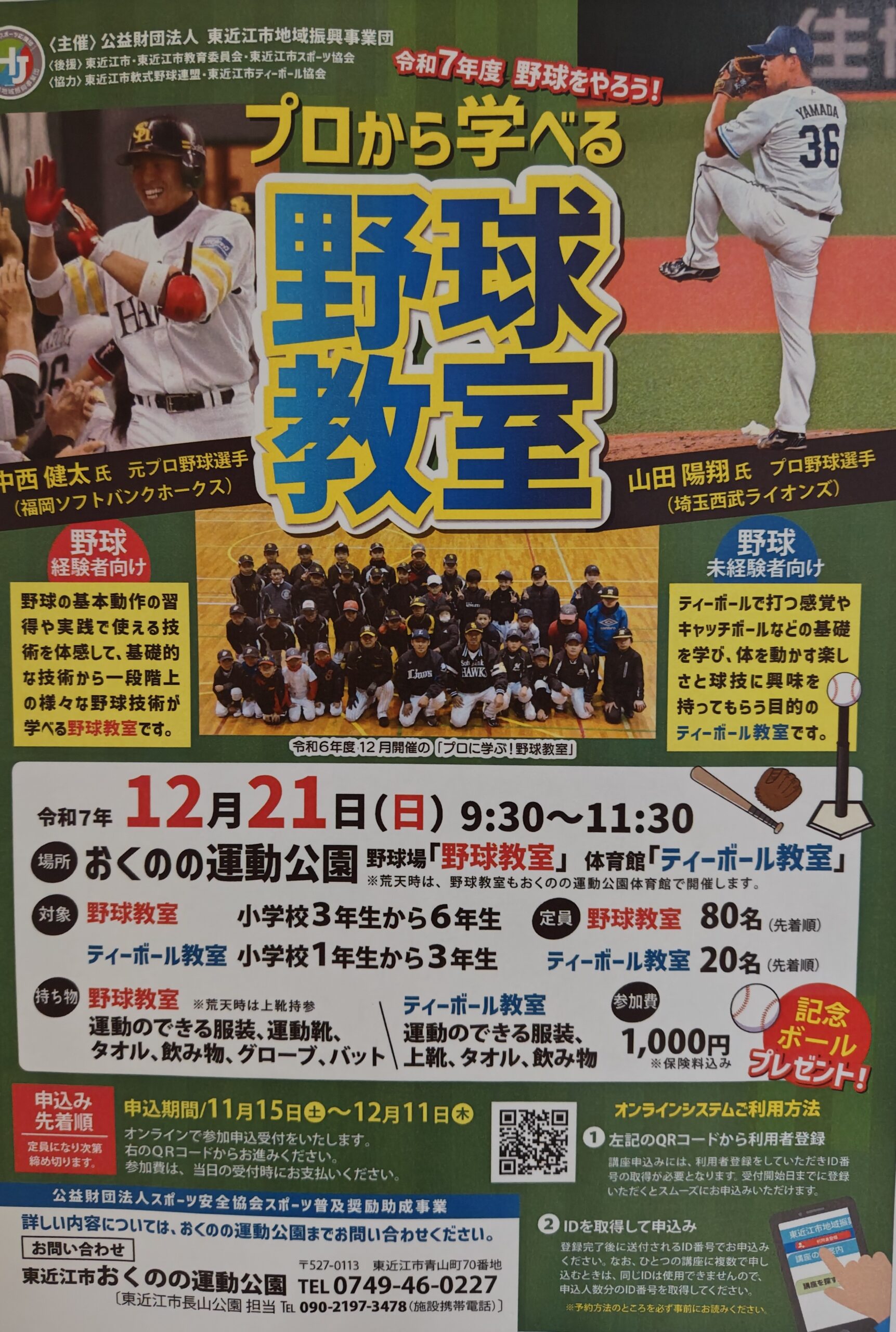 令和7年度 野球をやろう‼プロから学べる野球教室受講者募集!! …