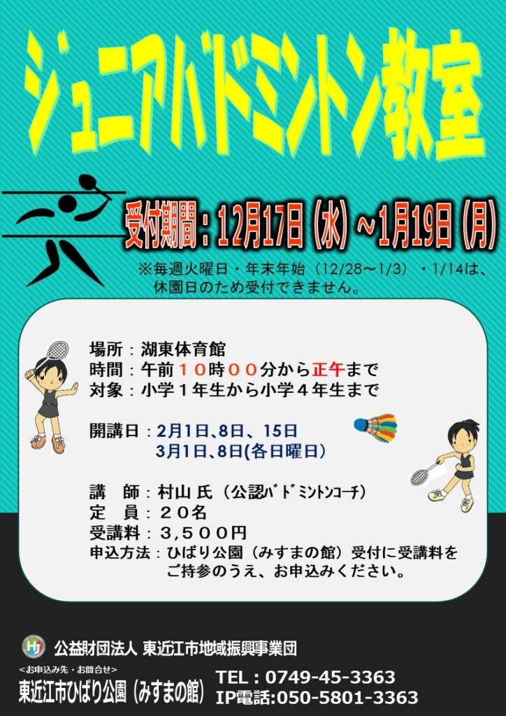 申込場所:東近江市ひばり公園みすまの館