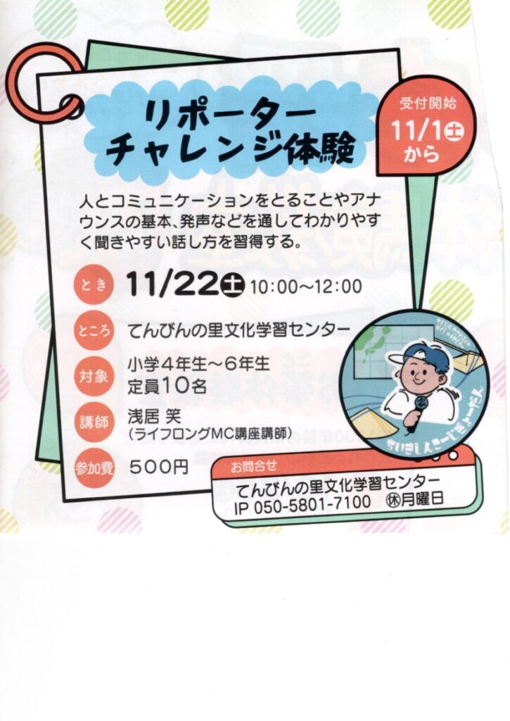 こども応援事業 リポーターチャレンジ体験参加者募集!!