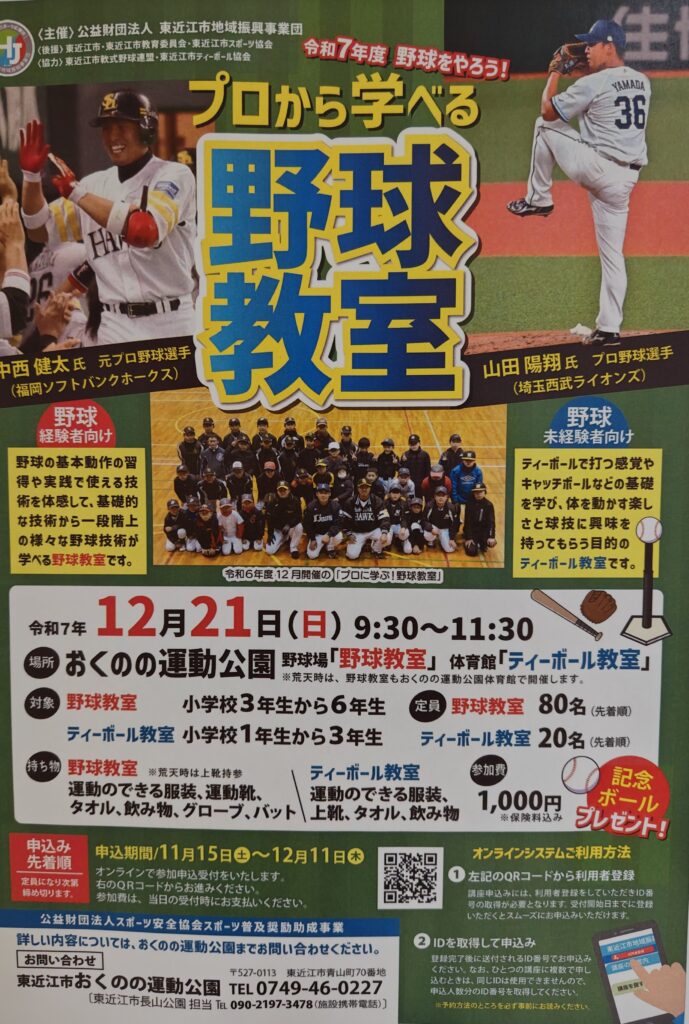 令和7年度 野球をやろう‼プロから学べる野球教室受講者募集!!