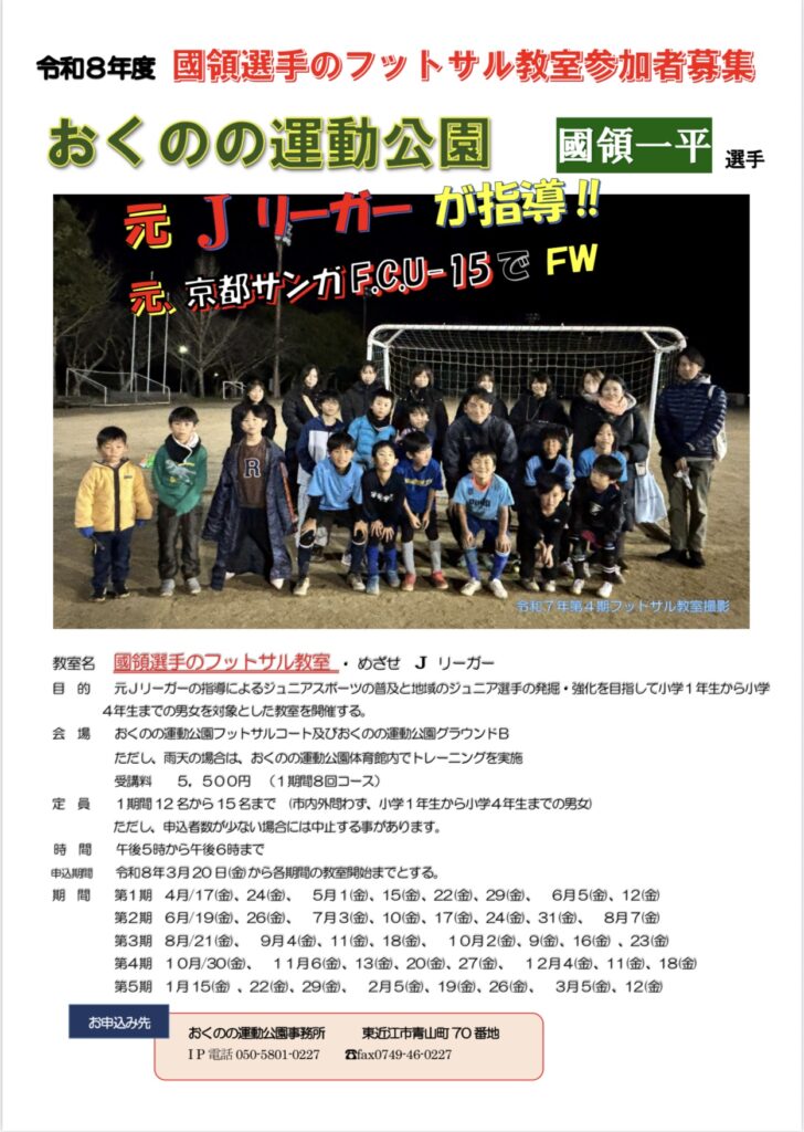 令和8年度國領選手のフットサル教室 参加者募集