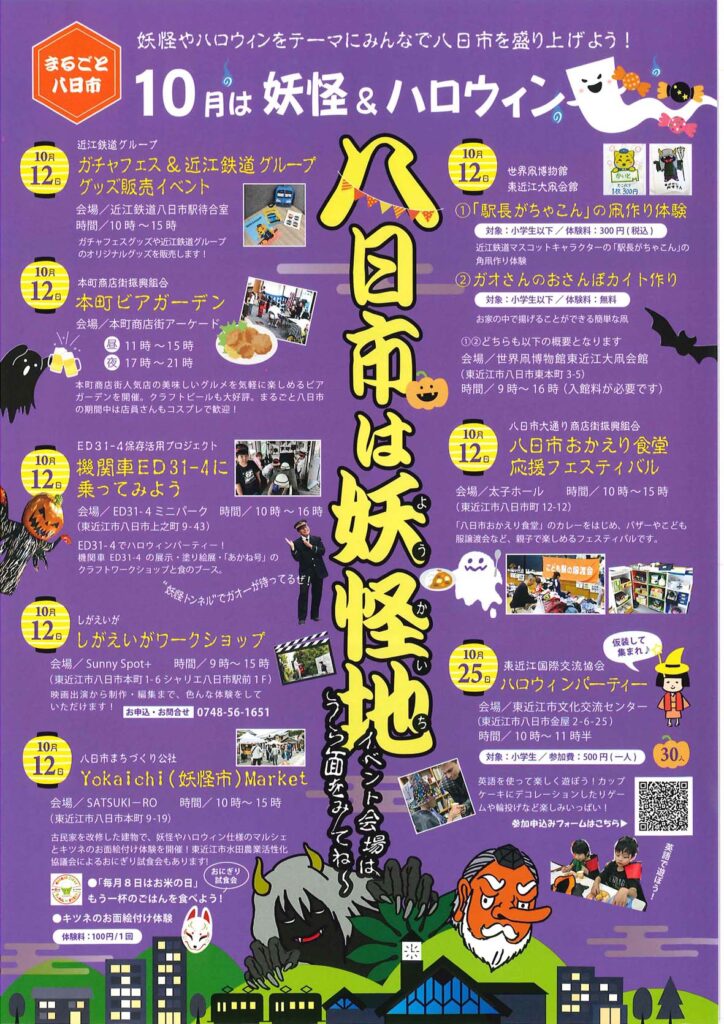10月の八日市駅前は「八日市は妖怪地」で、妖怪&ハロウィンのイベントやディスプレイで楽しめます。