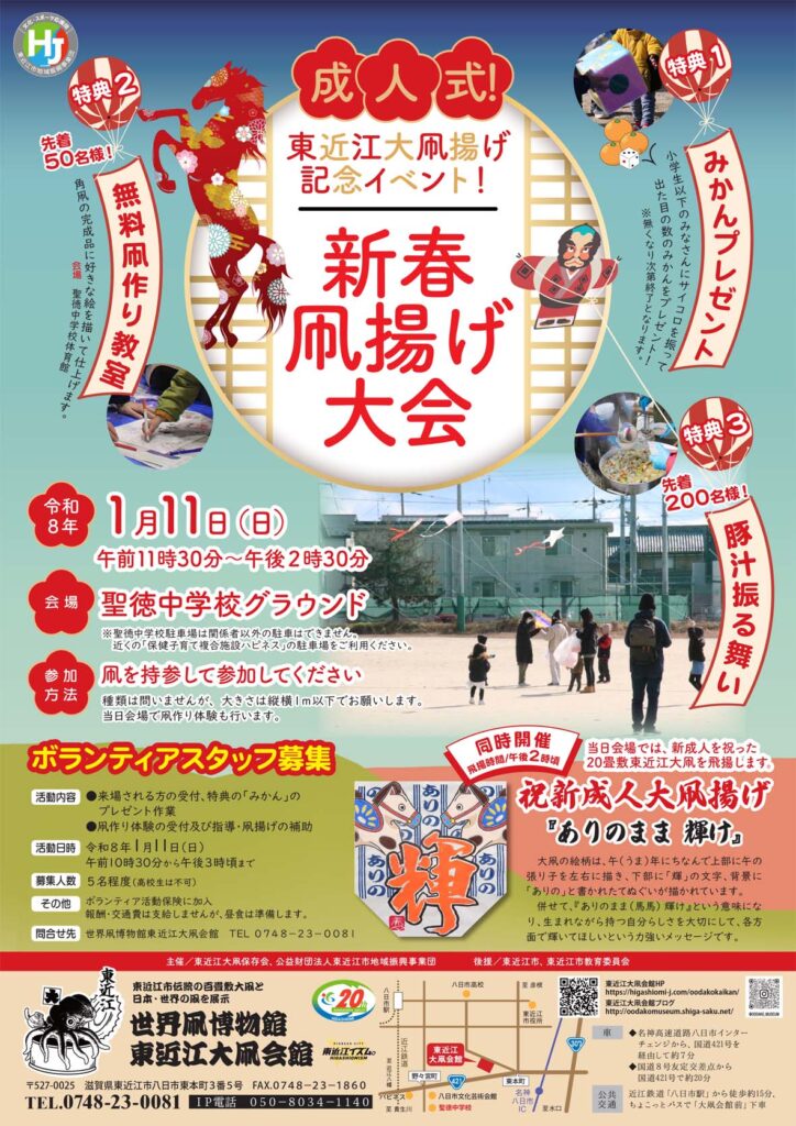 東近江の雄大な空の下、一緒に凧を揚げて、新成人の門出を盛大に祝いましょう!