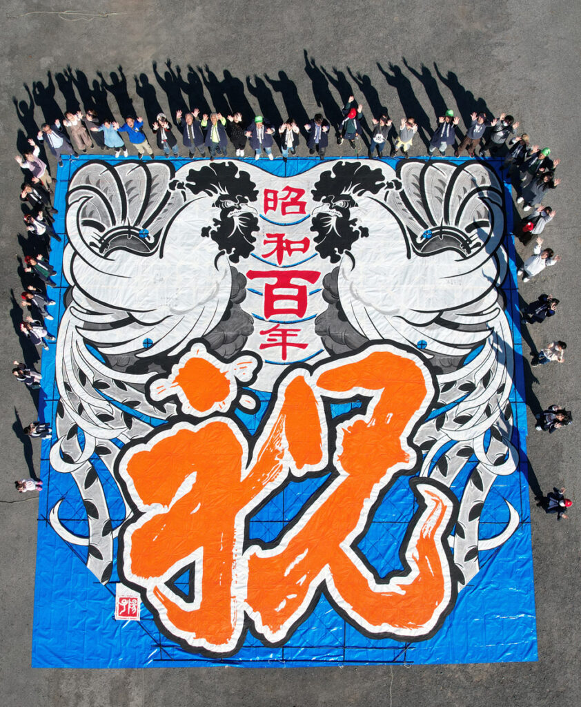 いよいよ明日、4月26日(日)。 11年ぶりの飛揚に向けて、100畳敷東近江大凧「慶祝昭和100年」の最終調整が行われます!