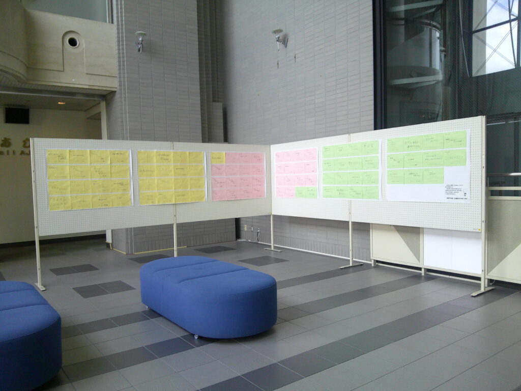 てんびんの里文化学習センター1階ロビーにて、五個荘中学校1年生の皆さんが考えられた「人生訓」を展示しております。